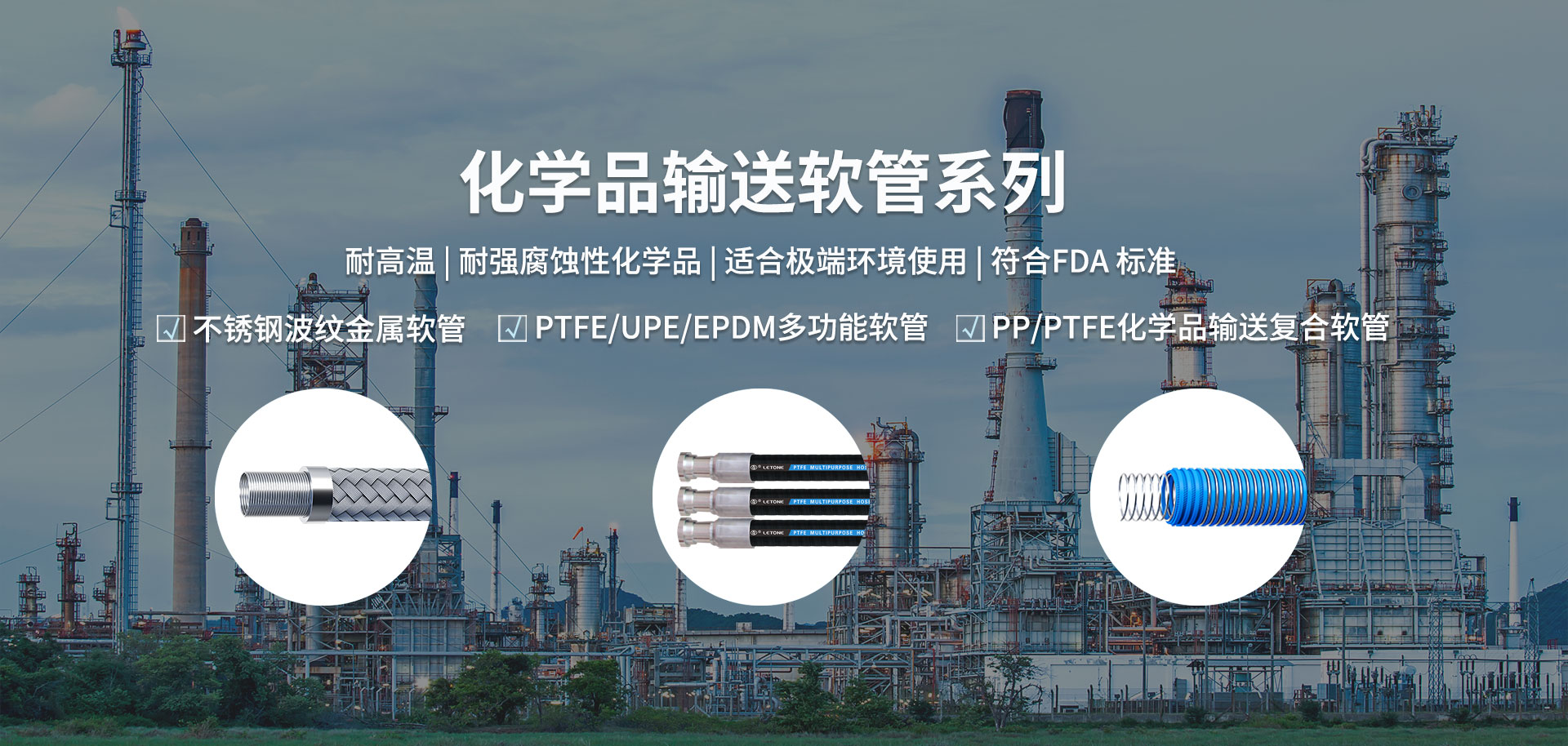 化學(xué)品輸送軟管適用于輸送多種腐蝕性物質(zhì)如酸性及堿性溶劑等。其超強耐腐蝕的特性使其成為石油化工、危險液體運輸?shù)刃袠I(yè)的品質(zhì)之選。